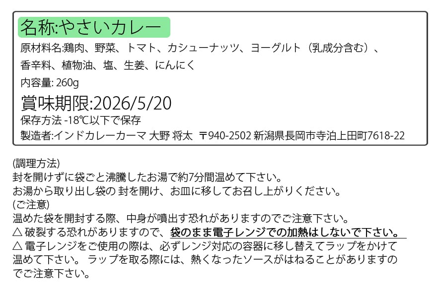 【通販】【冷凍】やさいカレー【5個入り】※時間指定のみ可